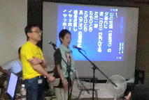 コマーシャルもかねて、数曲、前でいっしょに歌ってくださいました。 |